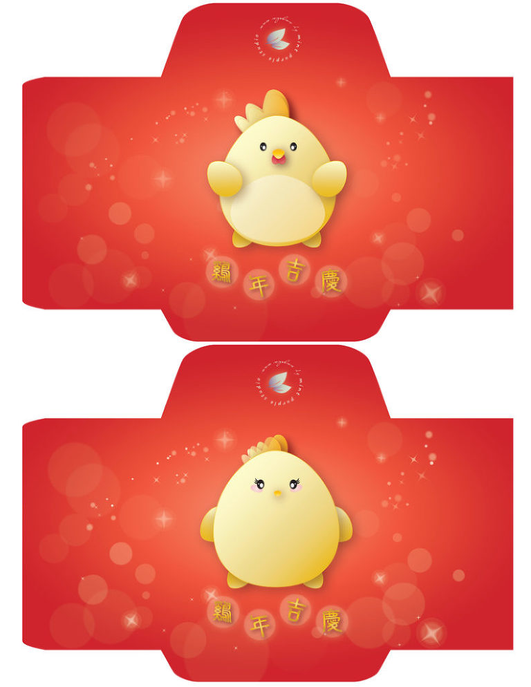 The Lunar New Year of the Chicken is fast approaching on January 28, 2017! The chicken is the tenth animal of the twelve Chinese horoscope signs. At Mint Purple Studio, our golden chickens Gumgaijai (金鷄仔) and Gumgailui (金鷄女) are running around creating all sorts of fun mischief. Why are all the honey jars in the Studio empty? Stick around for later posts and the chickens will tell you their character story soon. For now, Gumgaijai and Gumgailui want to spread some sweetness with wallpapers, wall hangings and a printable DIY red envelope template (great for kids) to welcome the coming of Lunar New Year 2017! Each design contains lucky Chinese greetings which are translated underneath the image. Please do kindly keep our watermark intact to uphold copyright and trademark regulations should you use or share Mint Purple Studio’s images or files. Thank you!